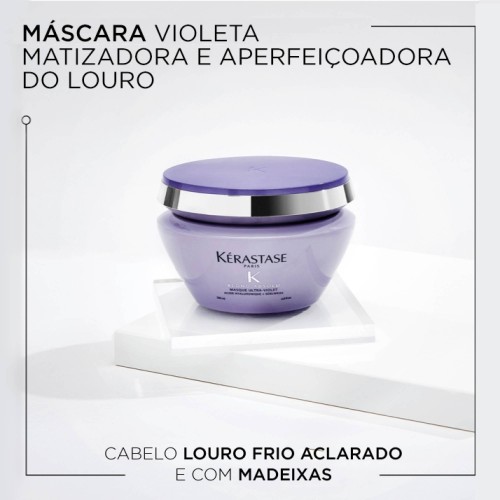 A Masque Ultra Violet é uma máscara ideal para cabelos aclarados ou descolorados a precisar de neutralização. Esta máscara roxa intensa penetra na fibra para remover os tons amarelados indesejados, enquanto hidrata e repara o cabelo em profundidade. A poderosa combinação de Ácido Hialurónico e flor de Edelvaisse acalma o cabelo e protege-o da oxidação diária e das partículas de poluição. Esta máscara capilar que não provoca manchas pode ser usada uma vez por semana ou sempre que seja necessário neutralizar os tons amarelos e manter o seu cabelo louro frio e luminoso.