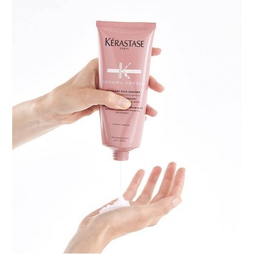 Um potente condicionador fortalecedor anti porosidade para todos os tipos de cabelo com coloração sensível ou danificado, especialmente adaptado a fibras finas a médias. Este creme rosa leve sublima e hidrata o cabelo para um toque suave e uma coloração vibrante e brilhante.