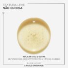 Aplicar dois pumps na palma da mão. Espalhar o óleos pelas duas mãos e aplicar o produto nos comprimentos e pontas. Não passar por água.
