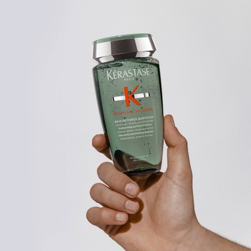 Bain de Force Quotidien é um shampoo diário purificador e fortificante para cabelo enfraquecido propenso a queda.
