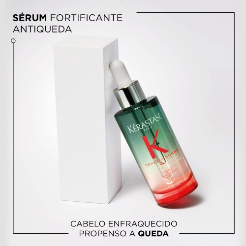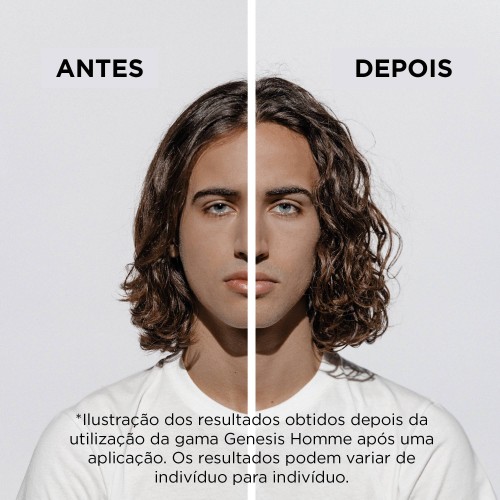 Genesis Homme é o 1º cuidado capilar antiqueda de dupla ação de Kérastase, para cabelo enfraquecido e propenso a queda.Concebida à base de um mistura de ingredientes extremamente eficazes que fortalecem e corporizam imediatamente as fibras capilares, para um aspeto mais volumoso imediato. O cabelo fica 5x mais denso e as fibras capilares 85% mais fortes. É um tratamento de utilização diária para prevenir a queda de cabelo a partir das raízes, reduzindo-a em 6 semanas.