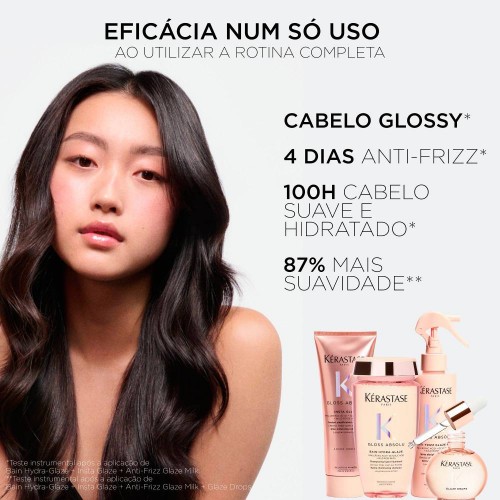 Para maximizar os resultados, combinar com a restante gama Gloss Absolu. Começar com o Bain Hydra-Glaze para a máxima limpeza e brilho. De seguida, aplicar o condicionador Insta Glaze. Finalizar com o óleo capilar Glaze Drops.