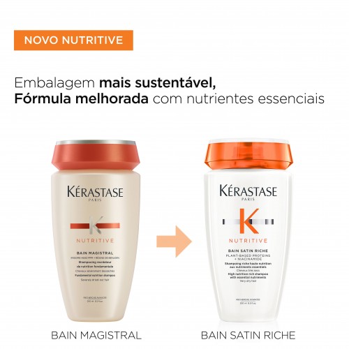 Nutritive Bain Satin Riche de Kérastase é um shampoo altamente nutritivo para cabelo muito seco. A sua fórmula combina polímeros antissecura para uma nutrição intensa e força, com nutrientes essenciais para nutrir e fortalecer o cabelo seco para um resultado leve. A fórmula altamente nutritiva limpa profundamente e repara o cabelo seco enquanto repõe a hidratação.
