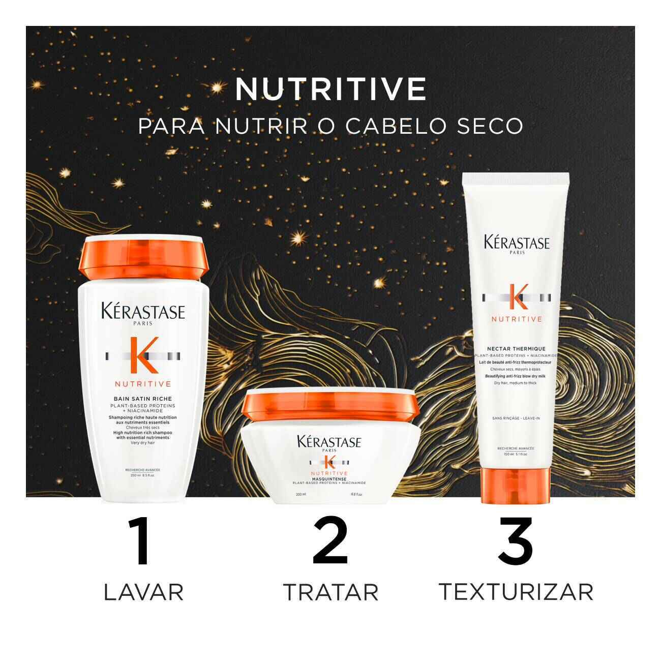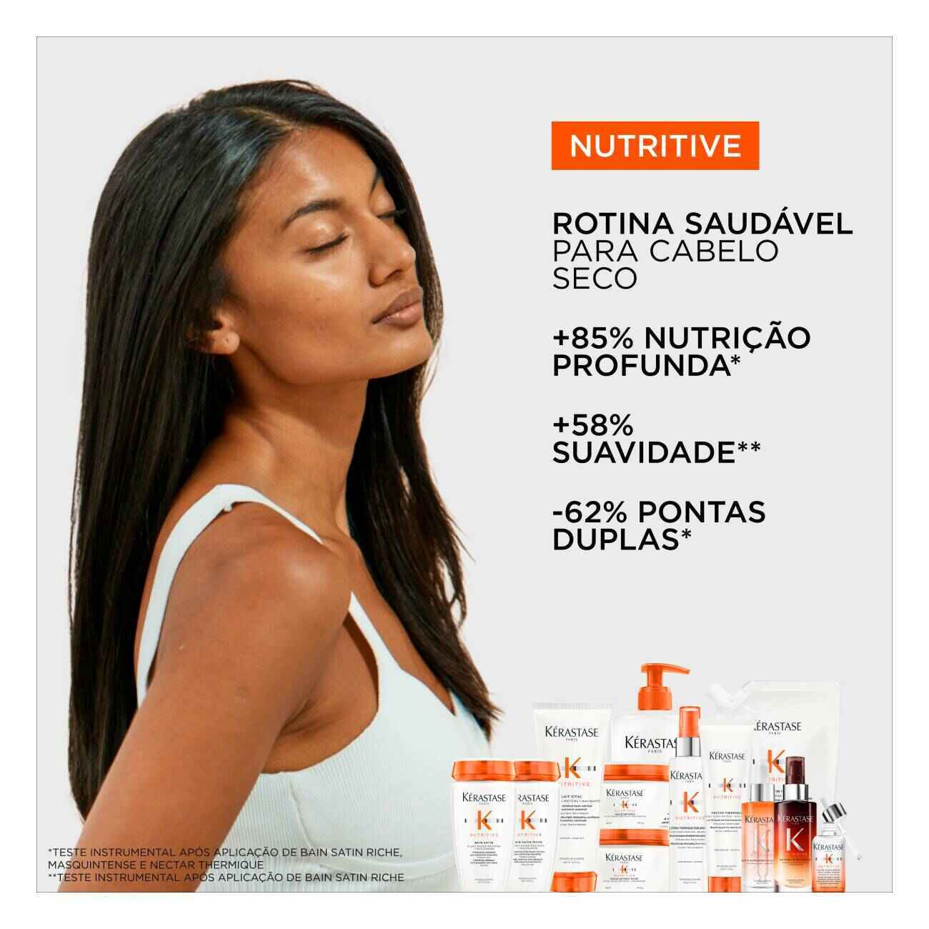 Nutritive Bain Satin de Kérastase é um shampoo hidratante suave para cabelo seco, fino a médio. A fórmula suave deste shampoo, com proteínas, limpa em profundidade os cabelos secos e restaura a espessura e o brilho do cabelo, ao mesmo tempo que melhora a retenção de humidade e suaviza o cabelo. Este shampoo hidratante revitaliza e fortalece o cabelo para combater a desidratação e apoia a produção de queratina para conferir ao cabelo seco mais estrutura e força.