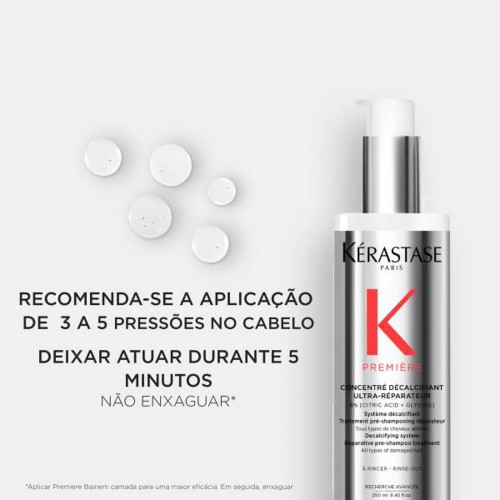 O tratamento ultra-reparador Kérastase Première Concentré Décalcifiant Ultra-Réparateur, é um tratamento pré-shampoo reparador descalcificante, para todos os tipos de cabelo danificado.