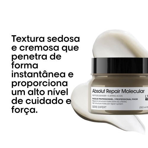 Esta máscara concentrada com uma tecnologia patenteada, formulada com reparador de ligações + 5 aminoácidos, repara 2 anos de danos e preenche as camadas moleculares do cabelo. O cabelo fica mais forte (+94% de força), com movimento e mais 85% de suavidade. Restaura a força, a elasticidade e o movimento.