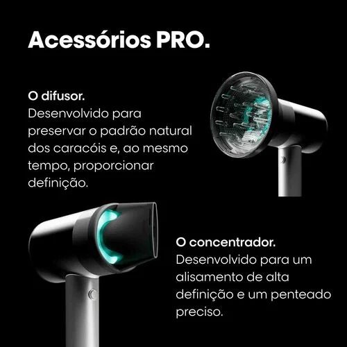 AirLight Pro vem equipado com: •2 acessórios (Concentrador & Difusor) •Corda de 3,5m •1 filtro (já instalado) •Um ecrã LCD integrado •Manual de instruções.